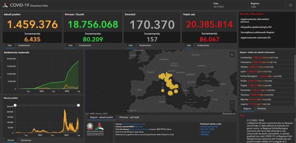 Covid, il bollettino di giovedì 21 luglio: 80.653 nuovi casi e 157 decessi