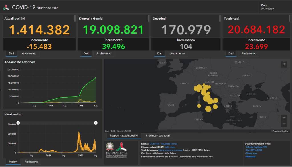 Covid, il bollettino del 26 luglio. Aumentano ricoveri e intensive: 253 morti in 24 ore
