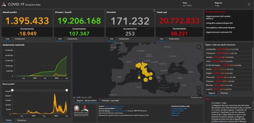 Nelle ultime 24 in Italia sono stati registrati 63.837 nuovi casi di Covid. I morti sono 207. I guariti 79.499. È quanto rileva il bollettino odierno del ministero della Salute sull’andamento della pandemia nel nostro Paese.