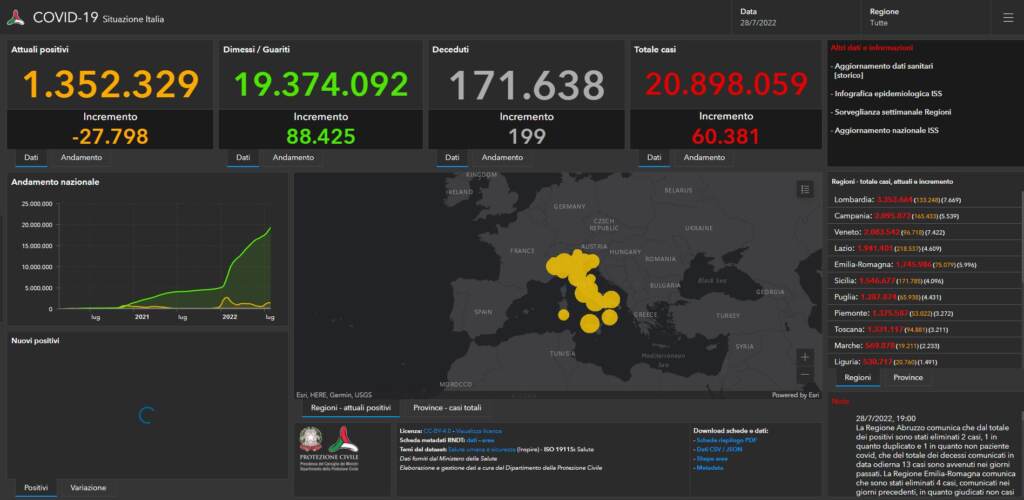 Sono 60.381 i nuovi casi di positività al Covid-19 in Italia nelle ultime 24 ore con 199 decessi. È quanto emerge dal bollettino quotidiano del ministero della Salute.