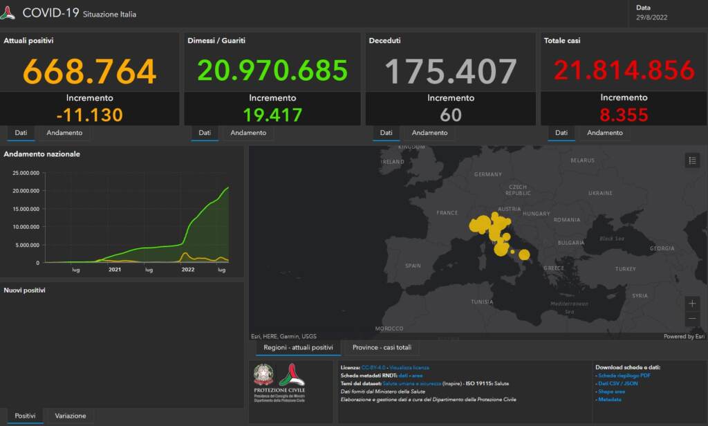 Il bollettino Covid del 29 agosto: 8.355 i nuovi casi e 60 vittime