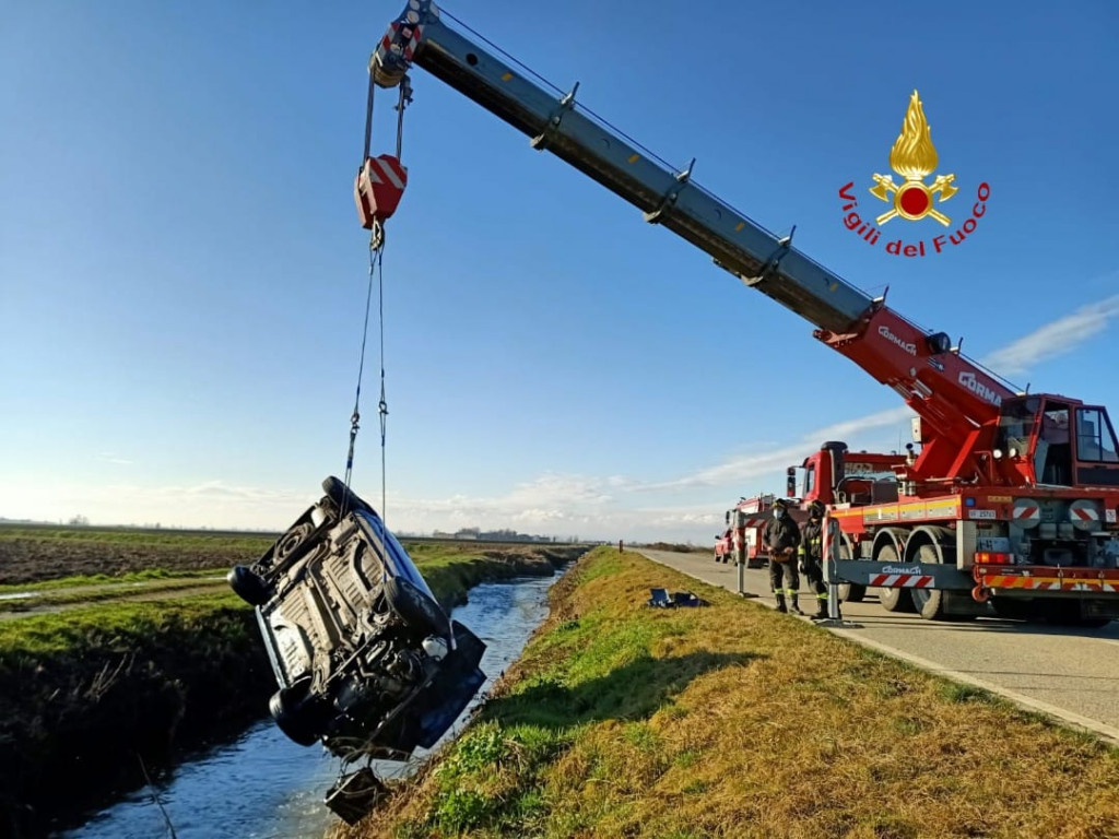 Una donna ha perso il controllo della sua auto ed è finita in un fosso a testa in giù. E’ successo sulla provinciale Vercelli-Olcenengo: sono dovuti intervenire i vigili del fuoco con l’autogru. L’auto era completamente a testa in giù: la scena sembra quella di un film, finito fortunatamente senza morti e feriti. La donna che occupava il posto di guida e il suo cagnolino sono infatti usciti completamente indenni dalla vettura. Sul posto carabinieri e polizia.