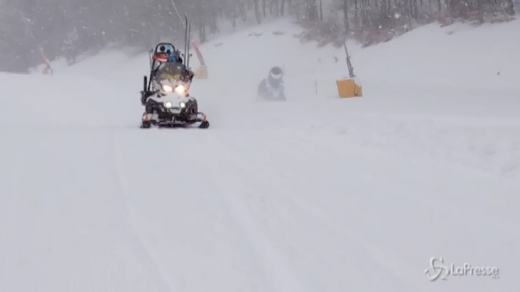 (LaPresse) In Val Pescara scende qualche fiocco nella Riserva naturale Sorgenti del Pescara con un paesaggio inusuale. La coltre bianca attecchisce in provincia dell’Aquila e con un tocco d’ali siamo a Sulmona per volare in alta quota sino agli impianti di risalita di Roccaraso, chiusi. A vigilare sulle piste da sci, anche con questo tempo, pronti a qualsiasi tipo d’intervento, gli uomini del Soccorso Alpino della Guardia di Finanza che arrivano con una motoslitta. Nell’Alto Sangro, vestito tutto di bianco, in giro si vede anche un po’ di gente. Da Sud a Nord della regione, arriviamo a Monteverde, località della provincia di Teramo, dove c’è una leggera spolverata di neve.