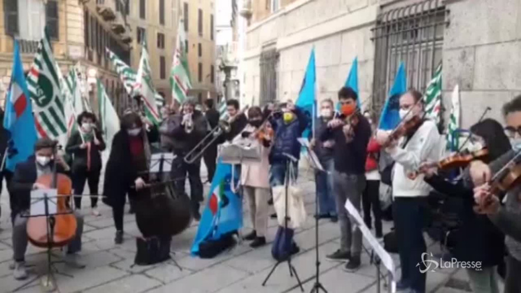 (LaPresse) – I lavoratori del mondo dello spettacolo aderenti a Fistel Cisl e Uilcom Uil stanno manifestando sotto la prefettura di Genova chiedendo la riapertura di teatri e sale da concerto. I musicisti presenti, tutti del Teatro Carlo Felice, hanno eseguito l’Inno di Mameli. Una delegazione è stata successivamente ricevuta in prefettura. Altre due manifestazioni sono previste nel pomeriggio, in piazza De Ferrari con il presidio organizzato da ‘Emergenza spettacolo Liguria’ e con quello della Cgil.