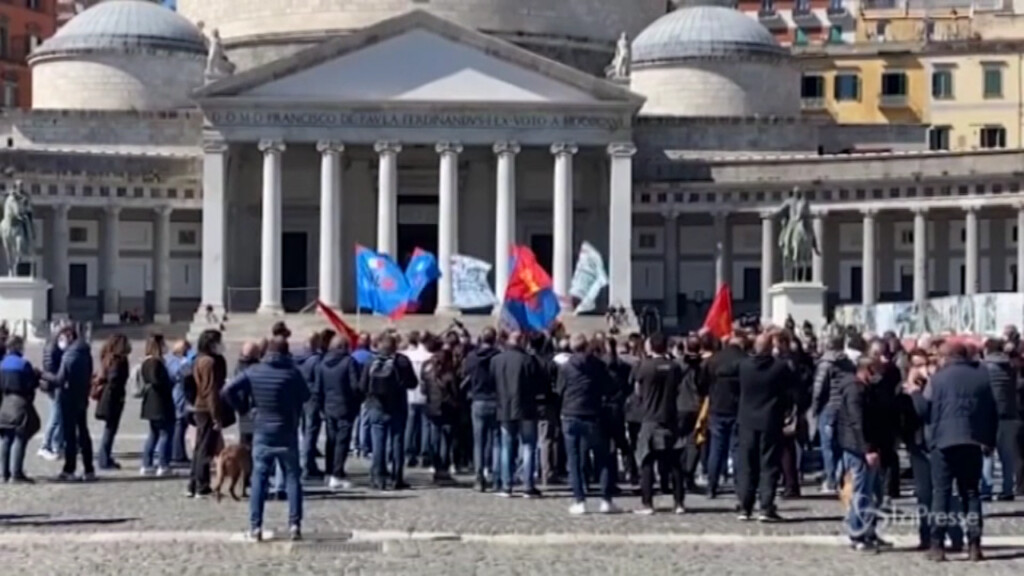 Assemblea pubblica, in piazza del Plebiscito a Napoli, degli operai della Whirlpool per scongiurare il licenziamento. Da un comunicato diramato dalle sigle sindacali Fim -Fiom- Uilm si è appreso che la direzione aziendale pur avendo registrato una ripresa dei volumi con conseguente miglioramento del mercato degli elettrodomestici conferma la chiusura degli stabilimenti di via Argine.