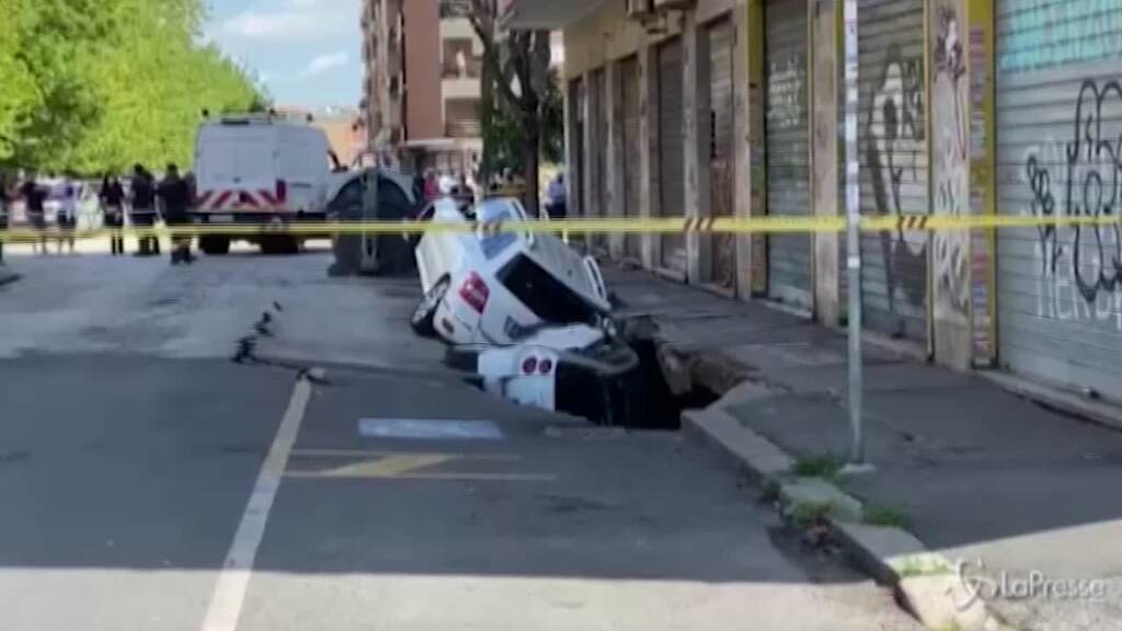 (LaPresse) Un’enorme voragine si è aperta in mattinata inghiottendo due auto. È successo a Roma, in via Zenodosso nel quartiere Torpignattara. La carreggiata è crollata in prossimità del marciapiede facendo sprofondare un suv Mercedes e una Smart parcheggiate lungo la via. Sul posto è immediatamente intervenuta la polizia municipale per circoscrivere il perimetro e far rimuovere i due mezzi. Secondo le prime ricostruzioni a causare il cedimento sarebbe stato un guasto alle condutture idriche sottostanti.