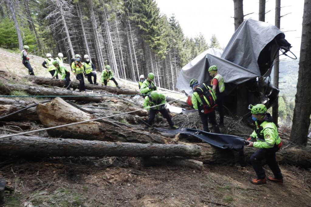 Inizialmente un secondo ‘forchettone’ non era stato trovato, ma durante un sopralluogo del soccorso alpino e dei carabinieri, è poi stato rinvenuto tra le lamiere. Per il momento la carcassa della cabina crollata resta in vetta: difficile il suo spostamento per via della zona impervia dove si trova. Ma sulle ragioni della rottura della fune le indagini proseguono: non sarebbe tranciata di netto ma sfilacciata e spezzata. “Non ci sono elementi per il momento per collegare reciprocamente i due eventi”, cioè la rottura della fune e il non funzionamento del freno, ha spiegato la procura.