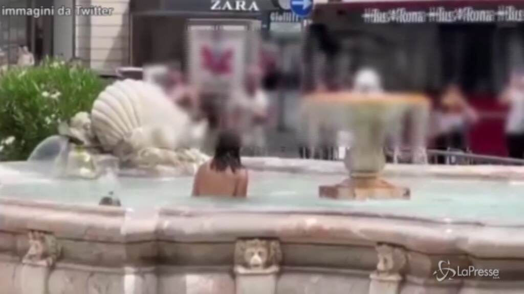 (LaPresse) – Si è tuffata completamente nuda nella fontana di piazza Colonna, a Roma, proprio di fronte a Palazzo Chigi, davanti agli occhi increduli di passanti e delle forze dell’ordine che l’hanno più volte invitata a uscire e a rivestirsi.