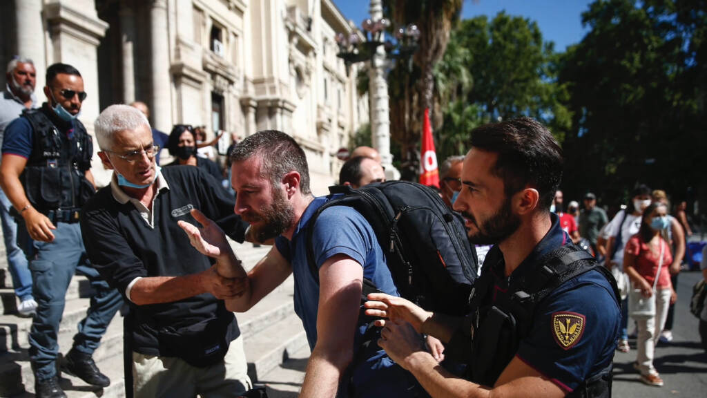 (LaPresse) – Ancora un giornalista aggredito: è successo alla manifestazione di docenti e personale Ata contro il green pass davanti alla sede del Miur in viale Trastevere a Roma. Vittima un giornalista di Repubblica, Francesco Giovannetti, che stava realizzando un servizio video. Alcuni manifestanti si sono avvicinati e hanno cominciato a minacciarlo, poi la violenza: una serie di cazzotti in faccia, fino a che i colleghi non sono intervenuti per dividerli. Il giornalista è stato portato via in ambulanza per ricevere soccorso medico, mentre l’aggressore è stato fermato e identificato dalla polizia. Nel parapiglia aggredito anche un videomaker di LaPresse.