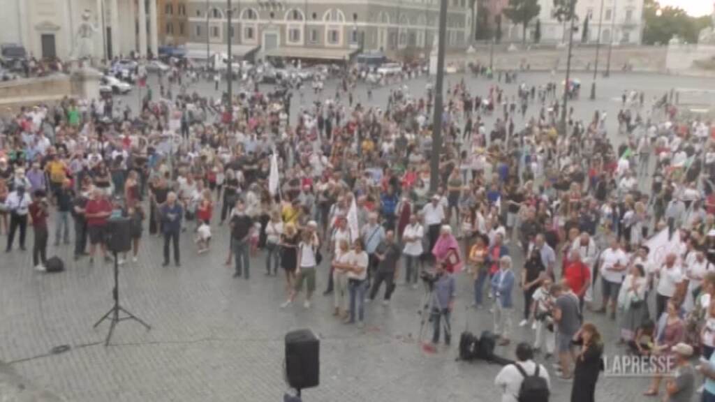 (LaPresse) Un flop la manifestazione a Roma contro il green pass. Poche centinaia di persone, tra cui il leader di Forza Nuova Giuliano Castellino, hanno risposto all’appello del movimento no vax per l’ennesimo sabato di protesta contro il certificato e contro i vaccini in piazza del Popolo.