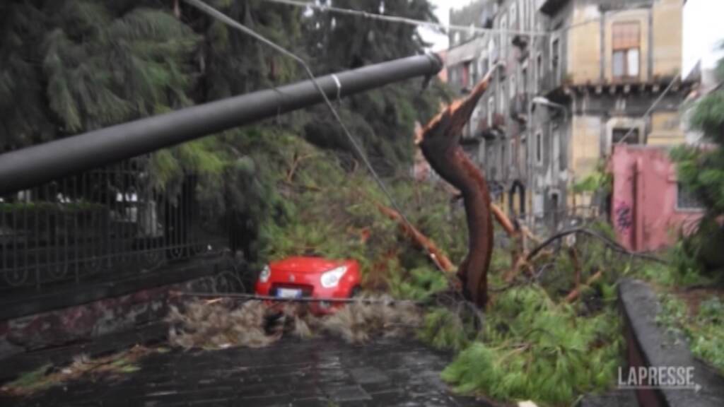 (LaPresse) Alberi secolari abbattuti, lampioni piegati dalle raffiche di vento, ombrelloni e tavoli distrutti e spazzati via. Catania fa la conta dei danni provocati da una violenta tromba d’aria che si è abbattuta martedì pomeriggio sul centro storico. “Purtroppo ci stiamo tropicalizzando, dovremmo fare prevenzione”, commenta uno dei negozianti danneggiati dal maltempo.