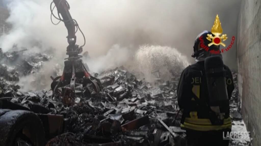 (LaPresse) Intervento dei vigili del fuoco a Torino in via Paolo Veronese, zona Nord della città, per l’incendio in uno stabilimento specializzato nella lavorazione di rifiuti elettrici che brucia dalla mattina di venerdì. Le fiamme hanno generato una densa coltre di fumo nero visibile in tutto il capoluogo e, a scopo precauzionale, è stata evacuata una scuola dell’infanzia situata in prossimità della zona interessata dall’incendio. Sul posto cinque squadre, tra cui esperti in soccorsi connessi al rischio NBCR (Nucleare Biologico Chimico Radiologico).