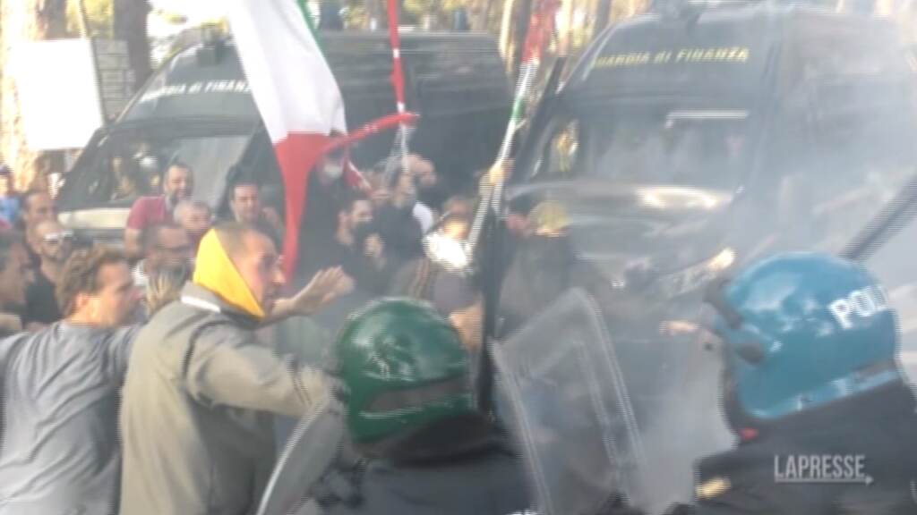 (LaPresse) Scontri a villa Borghese tra manifestanti e polizia, durante il corteo dei No green pass nella Capitale. Ferito anche Giuliano Castellino, leader di Forza Nuova, colpito da un sasso. Il centro di Roma è stato teatro delle devastazioni.