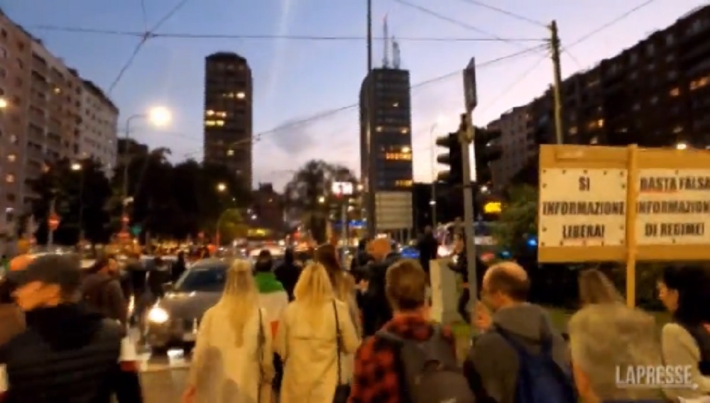 I manifestanti si sono dati appuntamento in piazza Fontana, come ormai avviene da diversi sabati, e a partire dalle 17.30 hanno iniziato a marciare, partendo da piazza Duomo. Una marcia terminata dopo oltre 5 ore intorno alle 22 in piazzale Loreto e che ha visto la partecipazione di circa 10mila persone, intenzionate a dire ‘no’ all’obbligo del passaporto vaccinale, divenuto obbligatorio per i lavoratori dipendenti dal 15 ottobre. Nel lungo pomeriggio di agitazioni, non sono mancati attimi di tensione con le forze dell’ordine. I manifestanti sono stati fermati con delle cariche di alleggerimento in via Borgogna, mentre tentavano di raggiungere la sede della Cgil, e in Foro Buonaparte, nei pressi di Largo La Foppa.