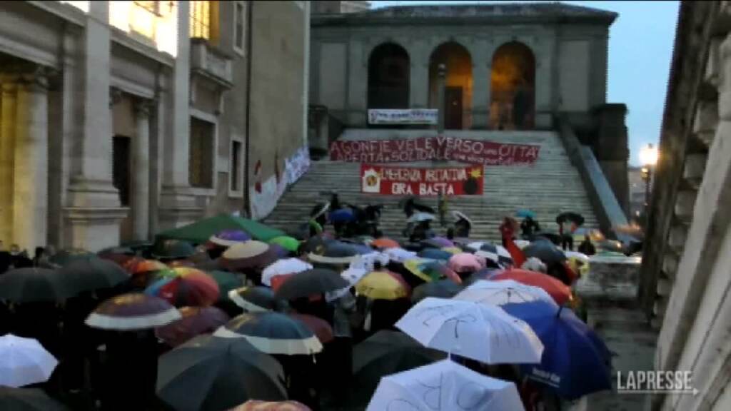 (LaPresse) L’avevano annunciato una settimana fa, dopo essersi incatenati sotto la sede della Regione Lazio, e nonostante una pioggia torrenziale hanno mantenuto l’impegno, i movimenti di lotta per la casa sono venuti fin sotto il Campidoglio. “Il mondo di sotto è salito di sopra”, urlano dai megafoni rivolgendo al neo sindaco richieste precise: un nuovo piano di assegnazioni alloggi, nuove case popolari, la cancellazione del decreto Lupi che impedisce l’assegnazione di una residenza a chi vive in una occupazione