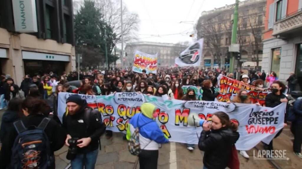 (LaPresse) Studenti in piazza in 40 città italiane. A Milano una manifestazione ha visto qualche centinaio di ragazzi in corteo per la città: “Make school not war” e “Stop alternanza scuola lavoro” alcuni dei cartelli portati dagli studenti. Alcuni di loro hanno indossato tute bianche pitturate di rosso e dato vita a dei flash mob: imbrattate le sedi di Unicredit e JPMorgan, fumogeni in piazza Affari. “Vogliamo ribadire ancora una volta che l’alternanza scuola-lavoro va abolita, ci sono stati due compagni morti, non vogliamo lavorare gratis per dei privati ma andare a scuola per formarci e al momento la scuola non ce li fornisce” spiega uno studente. A Milano sono più di 10 le scuole superiori al momento occupate.