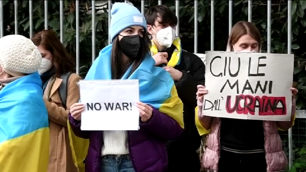 (LaPresse) Alcuni cittadini ucraini si sono riuniti davanti al consolato russo a Milano, in segno di protesta contro l’attacco sferrato da Mosca a Kiev. “Non basta dire che la Russia si deve ritirare, ci deve essere una risposta concreta da parte dell’Unione europea”, chiede uno dei manifestanti, molti dei quali espongono bandiere ucraine e cartelli contro il presidente russo. “Putin ha invaso l’Ucraina nel 2014, questa guerra non è nuova, l’Europa non può stare a guardare e basta”, aggiunge un altro ragazzo, originario della regione di Donetsk.