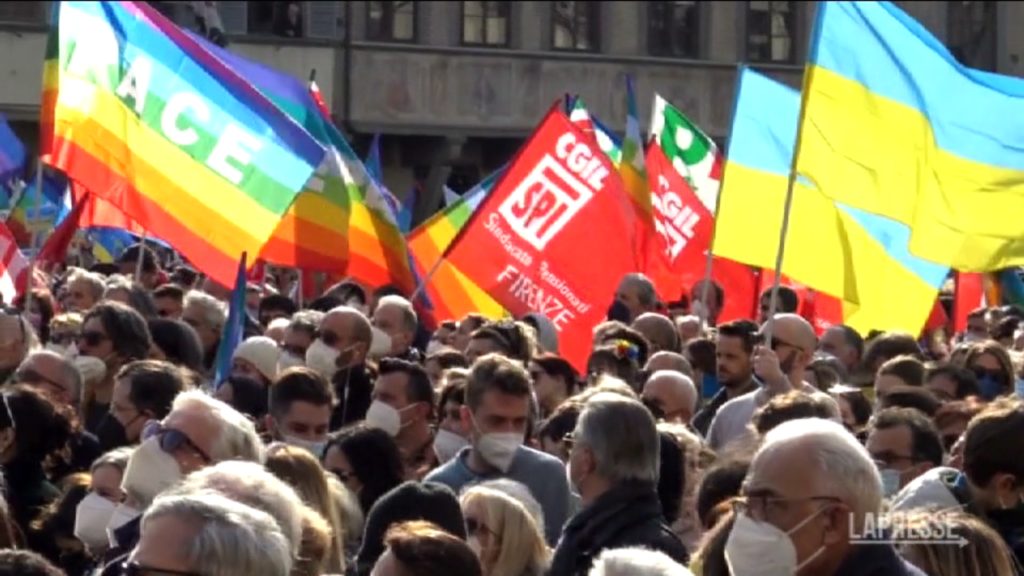 (LaPresse) Migliaia di persone in piazza a Firenze contro la guerra in Ucraina. Da piazza Santa Croce un grido per la pace: “Il sindaco ha chiamato tutti a partecipare e chiedere la fine della guerra”, spiega un manifestante, riferendosi a Dario Nardella. “Sono contro la guerra, sentire Zelensky suscita rabbia per cosa sta succedendo e spinge a trovare una strada giusta per la pace” aggiunge un’altra donna dalla piazza, riferendosi al videocollegamento del presidente ucraino con la piazza. La manifestazione si colloca nell’iniziativa europea ‘Cities stand with Ukraine’.
