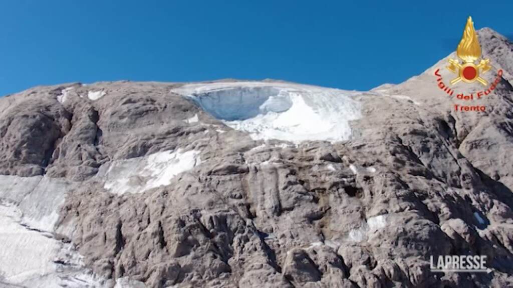 (LaPresse) – Il video girato dai vigili del fuoco di Trento mostra una ricognizione ravvicinata sulla calotta rimasta in bilico e su fronte slavina della Marmolada, teatro della tragedia del 3 luglio che ha fatto 9 morti.