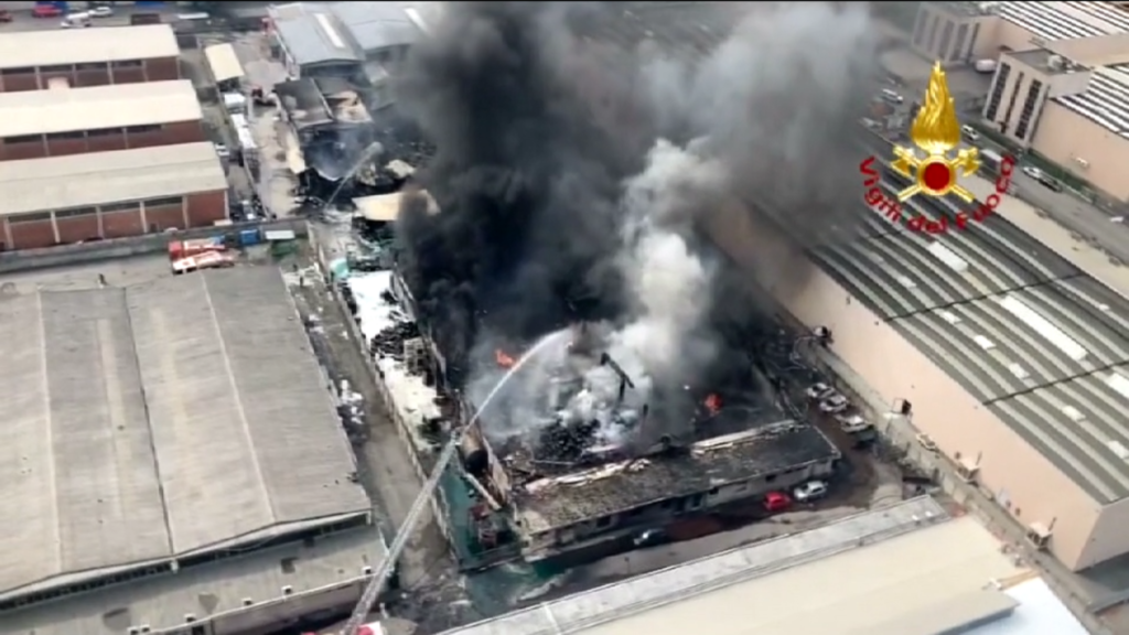 (LaPresse) Il nuovo video girato dai Vigili del Fuoco mostra il denso fumo nero che si è sprigionato a causa dell’incendo all’azienda Nitrolchimica di San Giuliano Milanese. Il sorvolo dell’area da parte dell’elicottero e dei droni dei Vigili del Fuoco è servito per definire in maniera più puntuale l’estensione e l’impatto dell’incidente. Il coordinamento dell’intervento è in capo alla Prefettura di Milano che ha convocato anche Arpa, assieme alle Forze dell’Ordine e agli altri enti coinvolti.