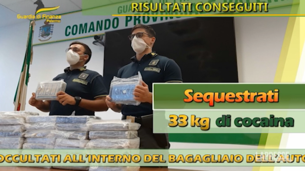 (LaPresse) I finanzieri del comando provinciale di Palermo hanno sequestrato 33 chili di cocaina. Erano nascosti all’interno di una vettura che è stata sottoposta a controllo all’altezza dello svincolo di Buonfornello, in direzione Palermo. Trenta panetti erano nascosti dentro il bagagliaio dell’auto. Il conducente della vettura, che stava trasportando la droga, è stato arrestato.