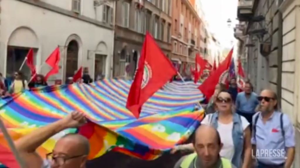 (LaPresse) Migliaia di persone sono scese in piazza a Roma, secondo gli organizzatori, per la manifestazione indetta dalla Cgil. Al centro il tema del lavoro ma non sono mancati riferimenti alla fine del conflitto in Ucraina: nel corteo anche la maxi bandiera con i colori della pace.