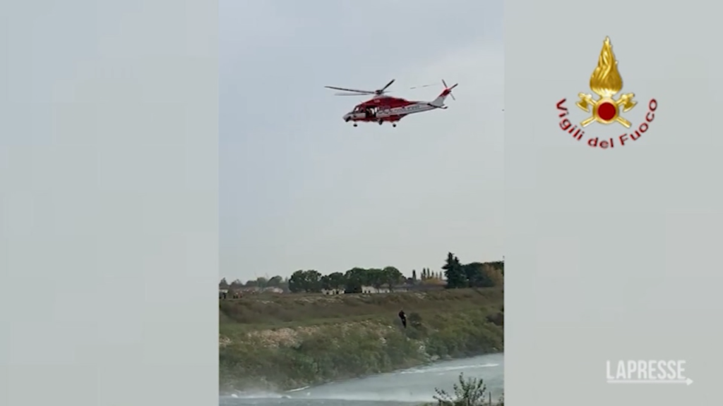 Operazione di soccorso nel primo pomeriggio di oggi nelle acque del fiume Brenta, nel territorio di Strà (VE). Nel tratto del corso d’acqua gli elisoccorritori dei vigili del fuoco, provenienti dal reparto volo di Venezia, hanno salvato un pescatore che era rimasto bloccato per l’innalzamento del livello dell’acqua.