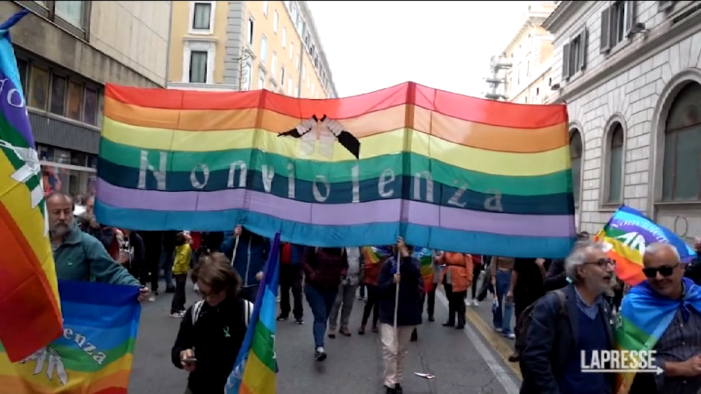 (LaPresse) Dallo scoutismo al mondo della politica con Cinque Stelle e Pd in piazza senza bandiera. Ecco le immagini del corte partito da Piazza Repubblica e diretto San Giovanni in Laterano per chiedere lo stop alla guerra in Ucraina.