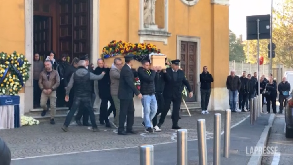(LaPresse) I funerali del capo ultrà interista Vittorio Boiocchi a Figino, quartiere della periferia ovest di Milano. Presente, fuori dalla chiesa, anche i tifosi della Curva Nord dell’Inter che ha salutato il 66enne, ucciso la sera del 29 ottobre con due colpi di pistola, con cori e striscioni. L’agguato è avvenuto a Milano poco prima dell’inizio della partita di Serie A a San Siro tra Inter e Sampdoria.