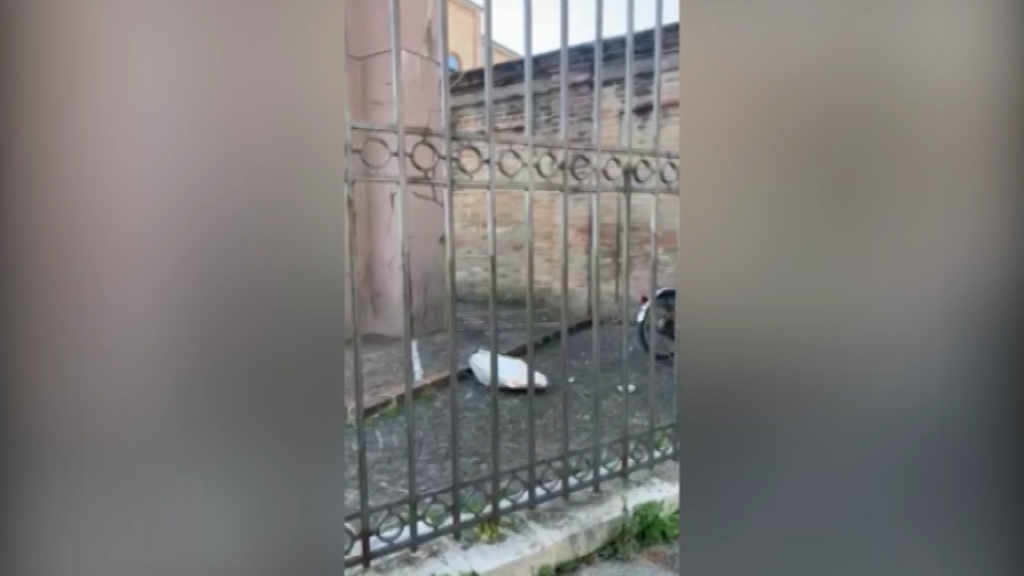 LaPresse) I danni del terremoto a Pesaro documentati sui social network. Le scosse di questa mattina hanno fatto cadere un pezzo della statua della Madonnina della chiesa dei Cappuccini, considerata un simbolo della città. Ma non sono state risparmiate nemmeno le scuole: una studentessa ha filmato le conseguenze del sisma sull’edificio che ospita l’istituto agrario Cecchi.