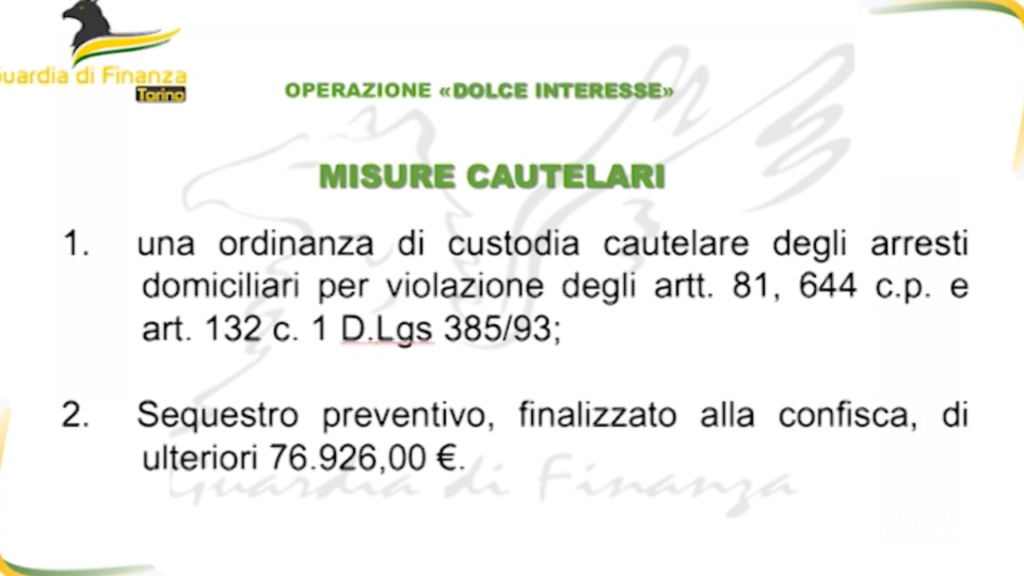 Un arresto per usura a Torino: applicava tassi di interesse che arrivavano fino al 430%. La guardia di finanza, coordinata dalla Procura della Repubblica del capoluogo piemontese, ha eseguito l’ordinanza applicativa di misura cautelare degli arresti domiciliari nei confronti dell’uomo, gravemente indiziato della commissione di reati di usura ed esercizio abusivo di attività finanziaria, nonché il sequestro preventivo, finalizzato alla confisca del profitto del reato, di circa 76mila euro. Nel corso dell’analisi della documentazione rinvenuta, sono stati individuati i nominativi di ulteriori persone coinvolte nel giro di usura le quali, dal 2018, avrebbero ricevuto prestiti a tassi usurai dalla persona indagata. Le indagini avrebbero evidenziato “plurimi e ripetuti” fatti di usura che sarebbero stati commessi dall’indagato.