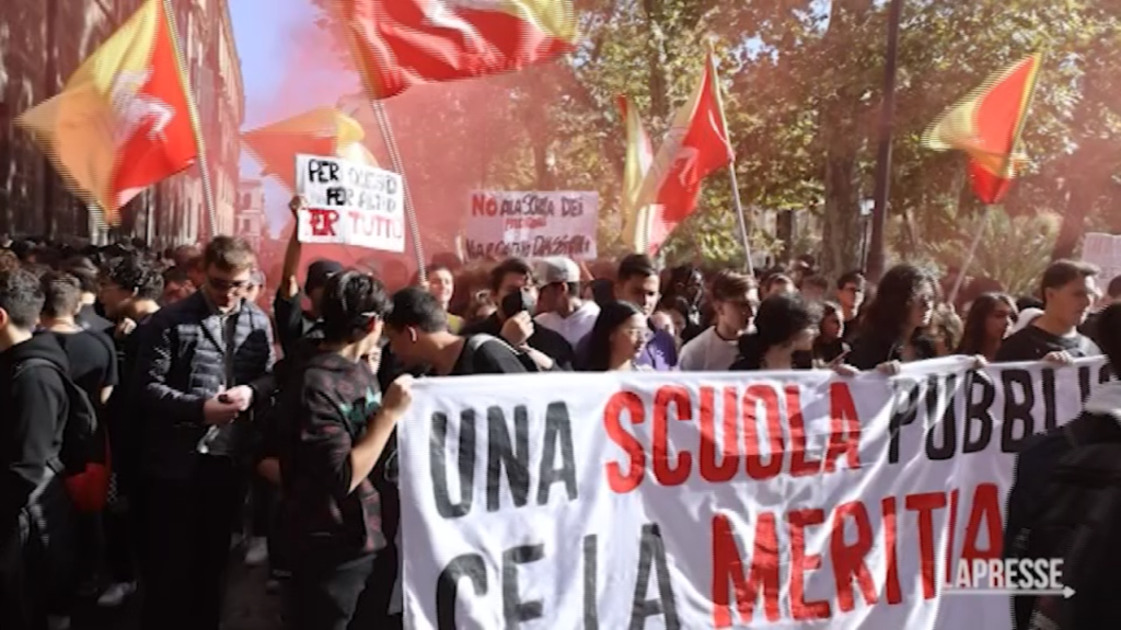 Centinaia di studenti sono scesi in piazza a Palermo per manifestare contro il governo nell’ambito dell’agitazione nazionale ‘No Meloni Day‘. Nello striscione di testa si legge: ‘Una scuola pubblica e di qualità ce la meritiamo tutti’, accanto alle immagini del presidente del Consiglio, Giorgia Meloni, del vicepremier e ministro delle Infrastutture, Matteo Salvini, e del ministro dell’Interno Matteo Piantedosi. I cortei, non autorizzati, hanno bloccato il traffico e la circolazione in diversi punti del capoluogo siciliano.