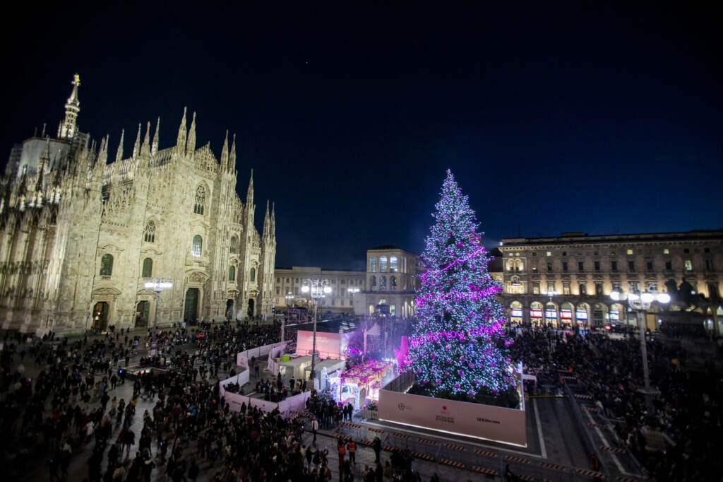 Tanta musica ed entusiasmo hanno accompagnato l’accensione dell’albero di Natale di piazza Duomo. A premere il pulsante che ha illuminato l‘abete di 25 metri proveniente dal Trentino, che svetterà all’ombra della Madonnina per le festività, è stato il sindaco di Milano Giuseppe Sala, insieme all’assessora al Turismo Martina Riva e all’imprenditrice Cristina Fogazzi – nota ai più come estetista cinica – fondatrice di VeraLab, l’azienda che sponsorizza l’albero.