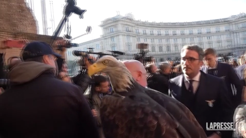 I giocatori della Lazio assieme alla dirigenza e allo staff tecnico sono arrivati alla Basilica di Santa Maria degli Angeli e dei Martiri per assistere ai funerali di Sinisa Mihajlović. Per l’occasione in chiesa anche l’aquila “Olimpia” simbolo e mascotte della squadra romana.