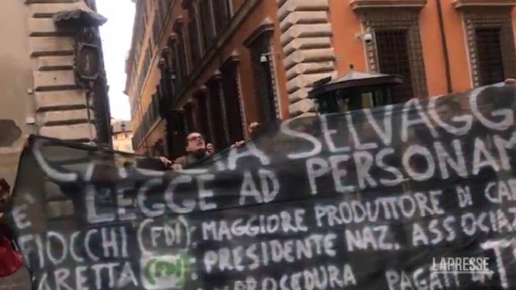 Un gruppo di ambientalisti ha protestato sotto la sede del Senato a Roma. I manifestanti si sono avvicinati all’ingresso di Palazzo Madama su via San Luigi dei francesi, controllati a vista dalle forze dell’ordine che sono intervenute togliendo lo striscione. “Assassini, venduti”, gridano gli ambientalisti. Il dito è puntato contro Tommaso Foti, capogruppo alla Camera di Fratelli d’Italia e primo firmatario dell’emendamento alla legge di Bilancio che consentirà l’abbattimento della fauna selvatica in città, nelle aree protette e nei periodi di divieto e silenzio venatorio.