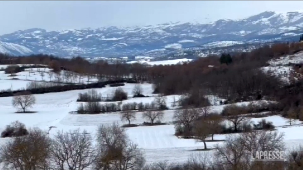 Il freddo glaciale non molla la presa sull’Italia. Il Centro nella morsa della neve: i fiocchi, in ingente quantità, hanno imbiancato diverse zone dell’Abruzzo tra cui San Demetrio ne’ Vestini: nelle immagini uno degli scorci più belli tra la conca aquilana e il versante marsicano.