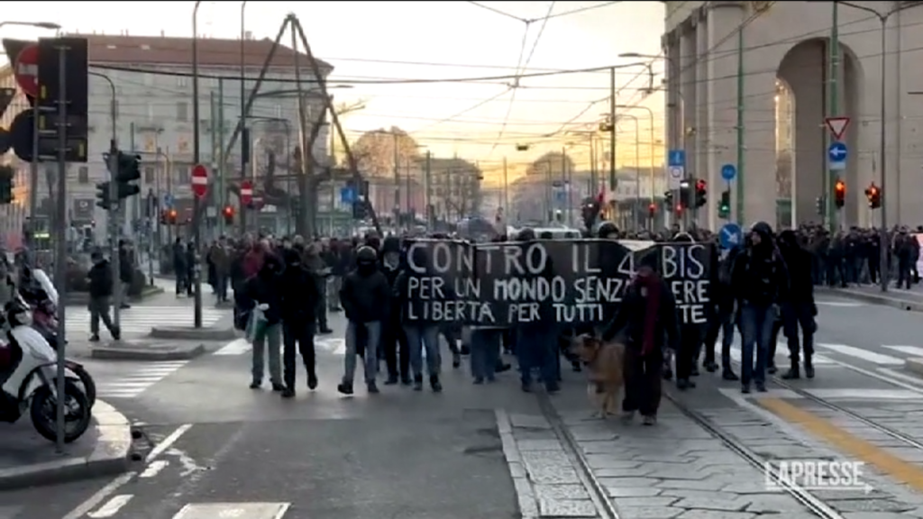 “Le trattative con la mafia le fa lo stato” e “Contro il 41 bis per un mondo senza galere, libertà per tutti e tutte”. Sono questi gli striscioni che aprono il corteo di circa 200 anarchici in solidarietà di Alfredo Cospito a Milano, partito da Porta Ticinese. I manifestanti hanno lanciato gavettoni e fumogeni in direzione dei giornalisti.