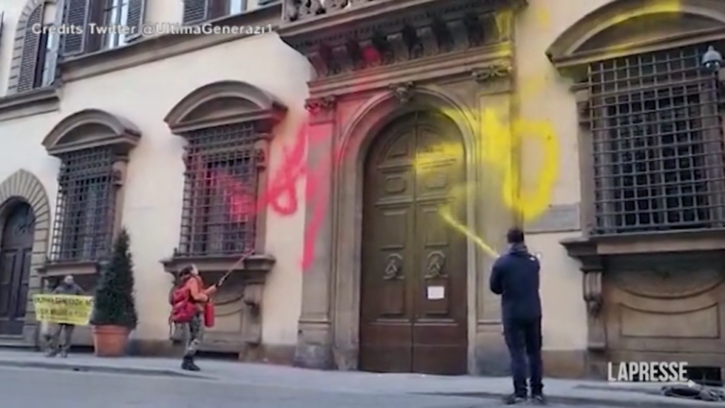 Questa mattina alcuni attivisti della campagna ‘Non paghiamo il fossile’, promossa dalla coalizione Ultima generazione, hanno imbrattato il Palazzo della Regione Toscana di via Cavour a Firenze. Per l’azione sono stati utilizzati estintori caricati con vernice gialla e rossa. La richiesta, nell’ambito della lotta contro i cambiamenti climatici, è sintetizzata nello striscione con scritto ‘Stop sussidi ai fossili’. Sul posto sono intervenuti i Carabinieri.