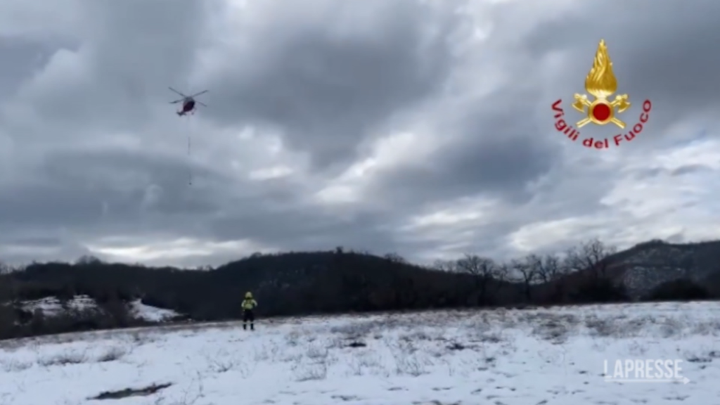 Addestramenti e prove dei vigili del fuoco: ecco le immagini del reparto volo di Arezzo in addestramento a San Cassiano. Svolte simulazioni di trasporto al gancio baricentrico dell’elicottero con radioguida da terra coordinata dagli elisoccorritori e dagli specialisti di bordo.