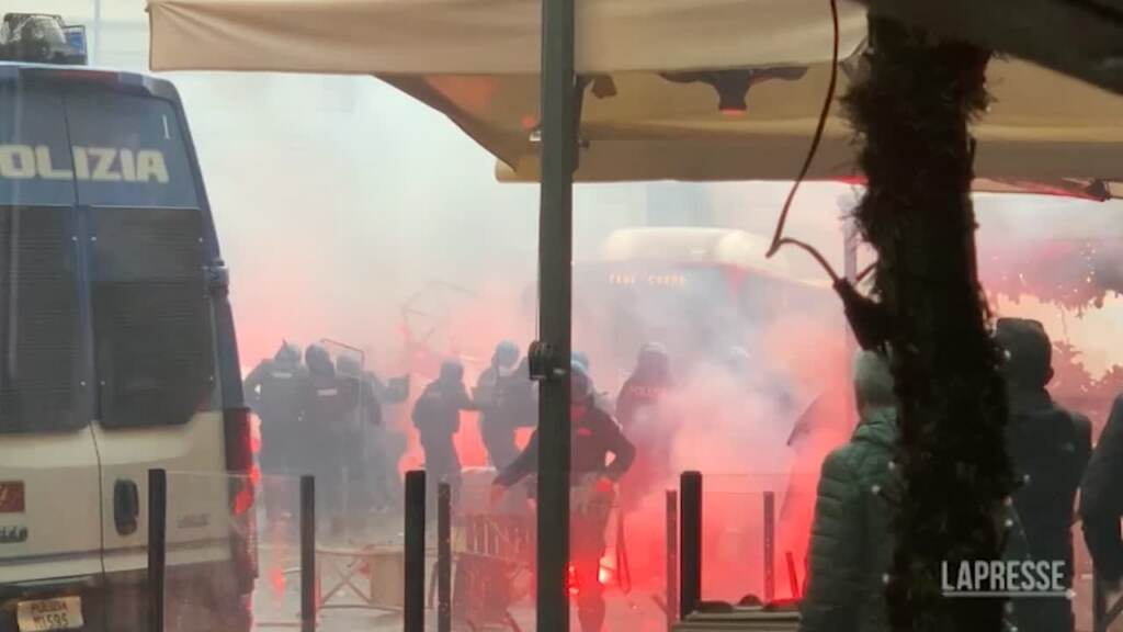 Alta tensione a Napoli, in vista del ritorno degli ottavi di Champions tra la squadra di Spalletti e l’Eintracht Francoforte. Nonostante nessun tifoso tedesco possa entrare allo Stadio Maradona, nel capoluogo campano sono arrivati circa 600 ultras. Petardi e pietre sono stati scagliati contro gli autobus dei tifosi tedeschi. Nel centro storico tensione tra gruppi rivali con lancio di bottiglie e auto della polizia date alle fiamme. La città è blindata e presidiata da circa 800 gli uomini delle forze dell’ordine.