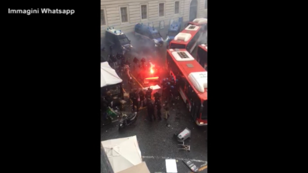 Alta tensione in centro a Napoli, in vista del ritorno degli ottavi di Champions tra la squadra di Spalletti e l’Eintracht Francoforte. Nel capoluogo campano sono arrivati circa 600 ultras tedeschi. Nel centro storico tensione tra gruppi rivali con lancio di bottiglie. Auto della polizia sono state date alle fiamme. La città è blindata e presidiata da circa 800 gli uomini delle forze dell’ordine.