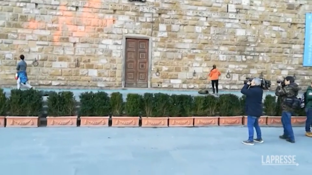 Blitz di attivisti per l’ambiente venerdì a Firenze. Presa di mira e imbrattata con vernice arancione la facciata di Palazzo Vecchio. Ad entrare in azione sarebbero stati due ragazzi bloccati subito dopo dal sindaco Dario Nardella che in quel momento stava effettuando un sopralluogo sull’Arengario. I due, che appartengono al gruppo Ultima generazione, sono stati fermati e identificati. Immediatamente partite le operazioni di ripulitura della facciata.