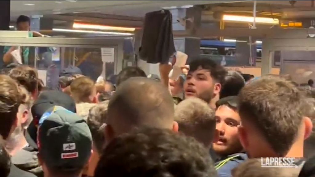 Attimi di tensione alla stazione Centrale di Napoli dove centinaia di persone, che dovevano lasciare il capoluogo campano dopo il match con la Salernitana, non riuscendo a trovare più biglietti disponibili hanno cercato di forzare uno degli ingressi che immette all’area binari. Agenti di polizia e personale ferroviario hanno respinto la carica dei tifosi riuscendo a chiudere il cancello. Lo stesso personale di Ferrovie dello Stato ha annunciato l’istituzione di un treno speciale per Caserta, per far fronte così alla straordinaria affluenza di gente rimasta senza posto.