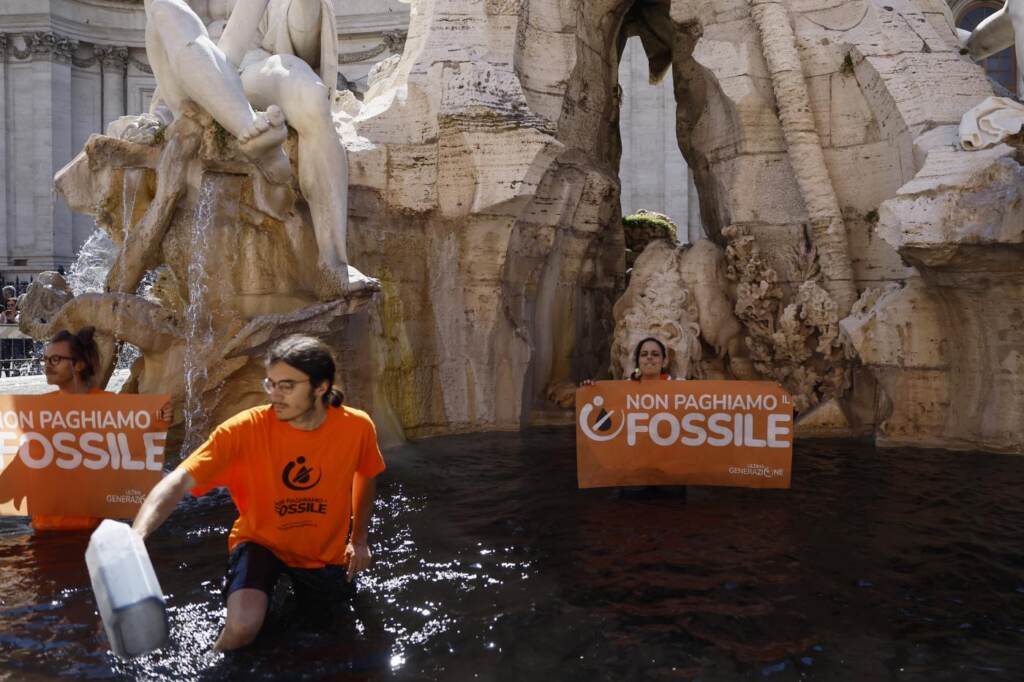 Roma, Ultima Generazione: colorata di nero l’acqua della fontana in piazza Navona