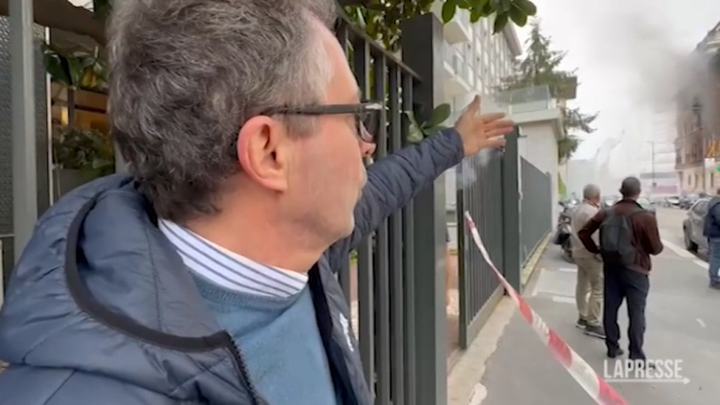 Il proprietario guarda la sua casa in fiamme dopo l’esplosione in centro a Milano. L’incendio partito da un furgone che sostava tra via Pier Lombardo e via Vasari in zona Porta Romana. Trasportava bombole di ossigeno. Cinque le auto coinvolte nel rogo che erano parcheggiate in strada.