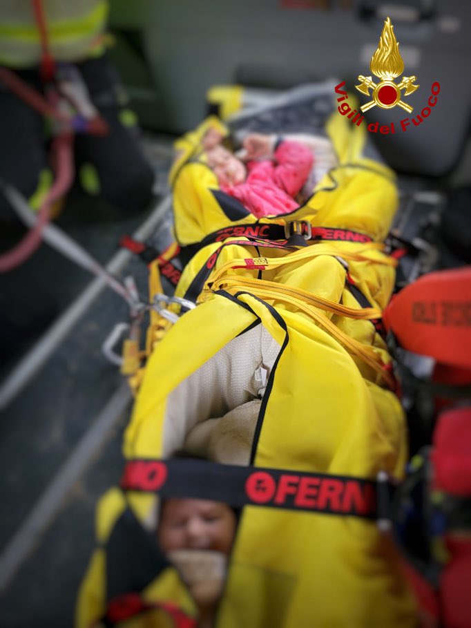 A Castrocaro Terme i vigili del fuoco hanno salvato due neonate (“due creature”) bloccate con la famiglia nella casa allagata. “A salvare le due bimbe e i genitori è stato l’equipaggio dell’elicottero Drago150 di Bologna. Nella foto sono entrambe al sicuro e sorridenti”, spiegano i vigili del fuoco.
