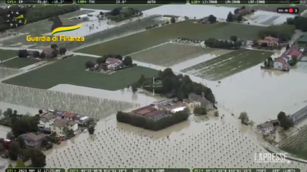 La Guardia di Finanza partecipa alle operazioni di soccorso nelle zone dell’Emilia-Romagna colpite dall’alluvione. Le vittime registrate sono almeno nove mentre sono circa 10mila le persone che sono state costrette ad evacuare le proprie abitazioni. Ad essere martoriati non sono solo i centri urbani ma anche le grandi distese di campi e coltivazioni che riempiono la regione.