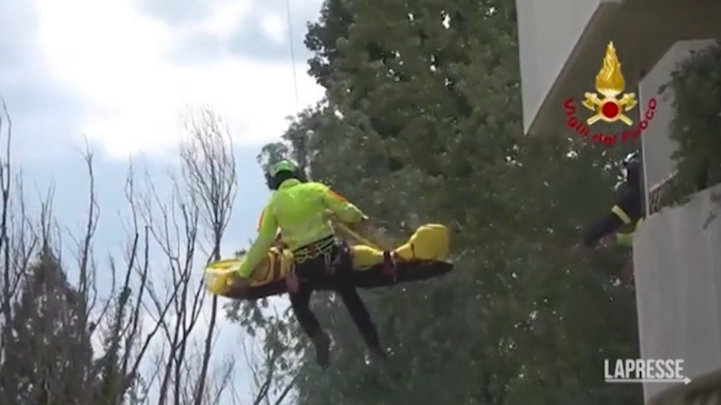 Una donna è stata recuperata da un elicottero dei Vigili del Fuoco a Forlì: era bloccata nella sua abitazione dopo il maltempo che ha messo in ginocchio l’Emilia-Romagna. Nelle immagini le manovre dell’equipaggio Drago VF150 per salvare la donna.