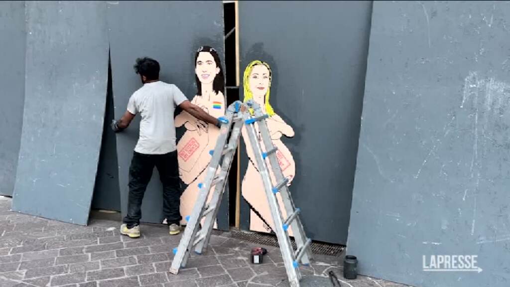 Rimossa l’opera sulla maternità surrogata che ritrae la premier Giorgia Meloni e la segretaria del Pd Elly Schlein con il pancione e senza veli. Sul grembo della Schlein la scritta “My uterus my choice” e su quello della Meloni “Not for rent”, la fiamma tricolore e una bandiera arcobaleno tatuati sulle loro braccia. Il murale dall’artista aleXsandro Palombo era apparsa lunedì nella centralissima Piazza San Babila a Milano. L’opera è stata portata via su ordine del Comune.