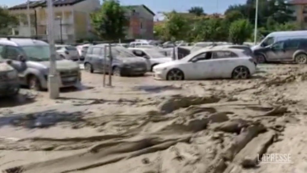 In viale Bologna a Forlì le macchine riemergono dal fango dopo l’esondazione del fiume Montone dei giorni scorsi che aveva provocato allagamenti in tutta la zona.